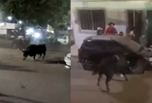 9 de mayo de 2022, es la segunda vez que se registra que un toro se escapa del ruedo durante...