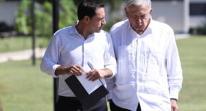 El presidente Andrés Manuel López Obrador y el gobernador de Yucatán, Mauricio Vila Dosal, revisan avance del Tren Maya y...
