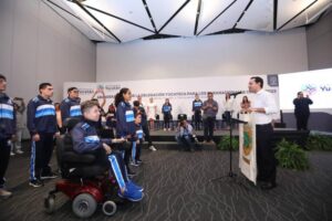 Vila Dosal encabezó la ceremonia de entrega de la bandera con el escudo del estado al representativo. – La delegación...