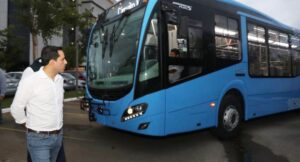 Mauricio Vila constata la tecnología con que cuentan los nuevos autobuses de la marca Mercedes Benz, al igual que supervisa...