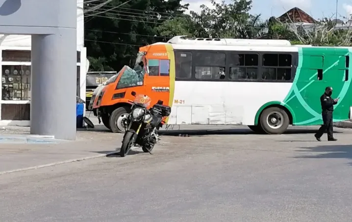 Los hechos ocurrieron cerca del mediodía en el cruce de las calles 23 y 40 del fraccionamiento Los Pinos, donde la unidad M-21 de la ruta Circuito Metropolitano acabó dentro de una farmacia.