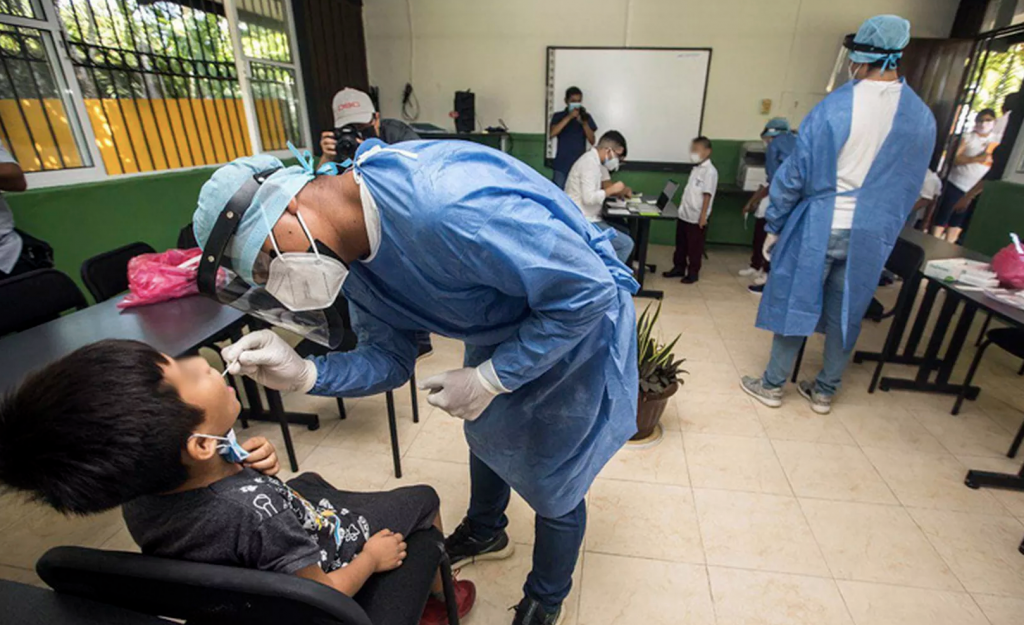 18 de marzo de 2022, MÉRIDA, Yucatán.- Alumnos y docentes de planteles de nivel básico en tres municipios participaron en la aplicación de pruebas aleatorias para detectar casos de coronavirus y romper cadenas de contagios, como parte del Protocolo de Muestreo en Escuelas para Detección Oportuna de Covid-19, que busca generar confianza en estudiantes y padres de familia para continuar con el retorno seguro a clases presenciales y, con ello, evitar el rezago educativo.