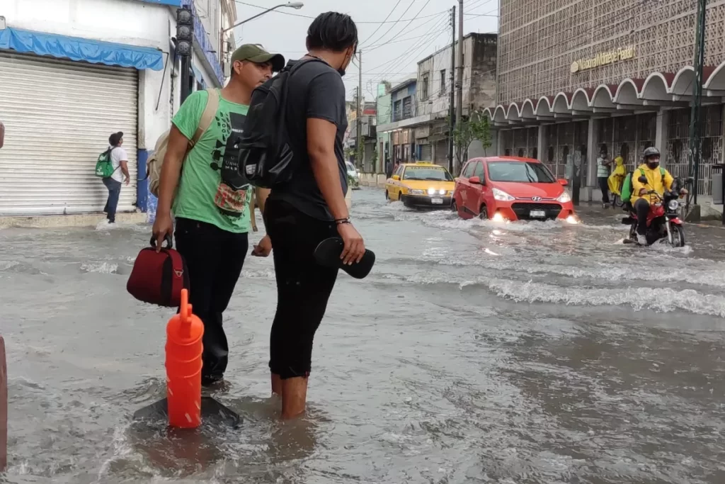Son visibles las afectaciones en la capital yucateca, principalmente en el Centro, donde las calles inundadas han provocado afectaciones en los peatones.