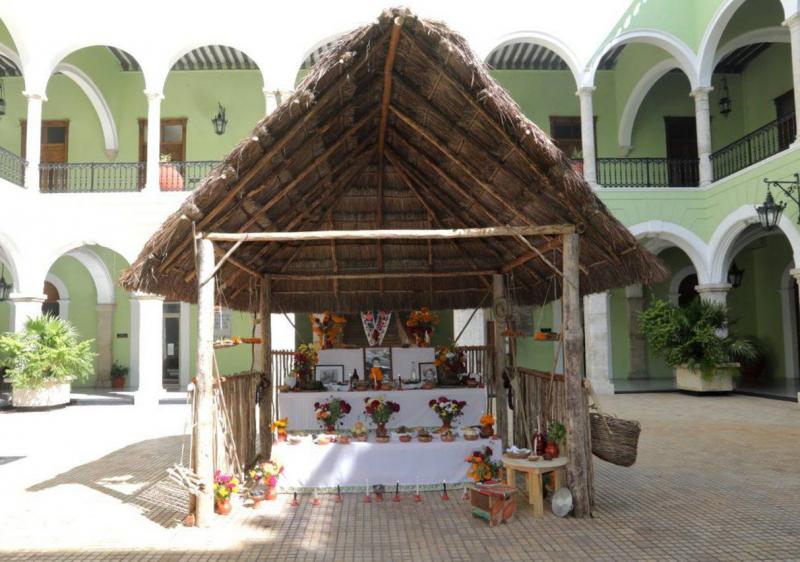El altar de la Sedeculta se ha montado con apego a las tradiciones de Yucatán, tomando en cuenta el significado de diversos elementos, como la cruz verde que marca el sincretismo entre deidades mayas y el catolicismo, las flores y plantas aromáticas para adornar los tres niveles, una representación de la tierra, el cielo y el inframundo.