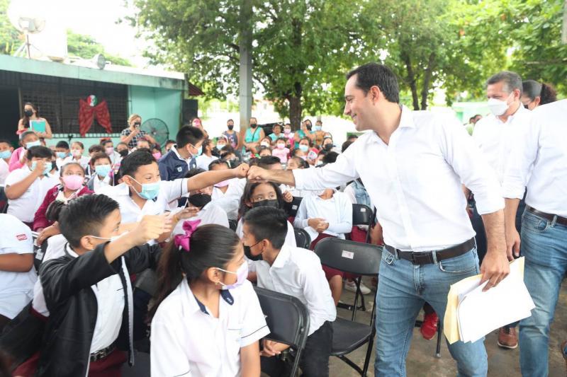 En su mensaje, el Gobernador señaló que a través de este esquema se asegura que todos los niños y las niñas de Yucatán cuenten con lo necesario para iniciar el ciclo escolar y que la falta de útiles escolares, zapatos y uniformes no sea un motivo para dejar la escuela y así, toda la niñez cuente con las mismas oportunidades para salir adelante.