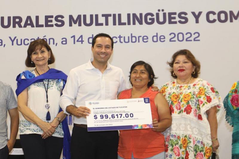 En ceremonia celebrada en el Centro de Convenciones Yucatán Sigo XXI, Vila Dosal entregó estímulos económicos por casi un millón de pesos del Programa de Acciones Culturales Multilingües y Comunitarias (PACMYC) para apoyar proyectos culturales en beneficio de 158 personas que habitan en 14 municipios de la entidad.