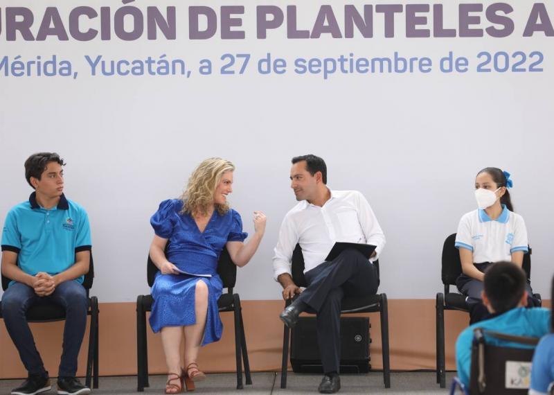 En su turno, la presidenta del Consejo de Fundación Azteca de Grupo Salinas reconoció la iniciativa del Gobernador Mauricio Vila por buscar nuevas opciones que garanticen una mejor educación y mejores escuelas en el estado, lo que resultó en una alianza entre dicha fundación y el Gobierno del Estado.