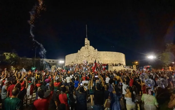 Cientos de aficionados abarrotaron el Monumento a la Patria tras el triunfo de los Leones de Yucatán en la Serie del Rey 2022.