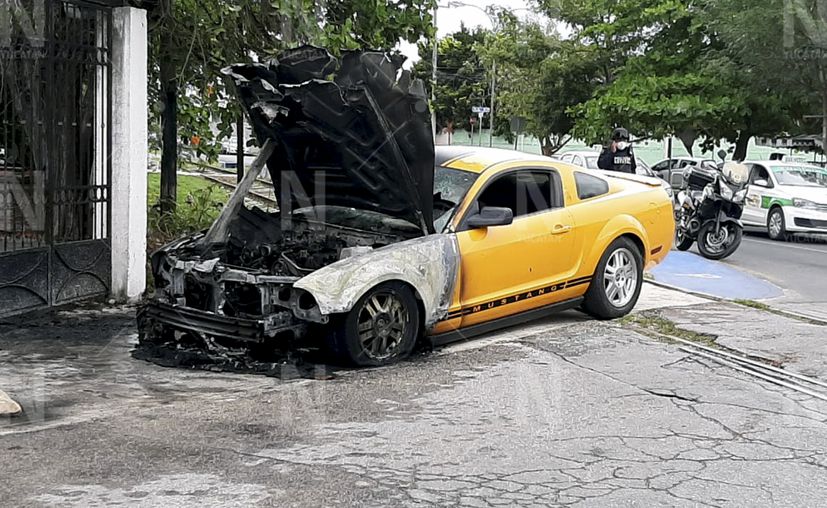MÉRIDA, Yucatán.- Todo el frente de un Mustang quedó convertido en chatarra quemada, al incendiarse mientras era conducido sobre la avenida Hidalgo, a la altura de la calle 38-A de la colonia García Ginerés. La aseguradora declaró el auto en pérdida total.