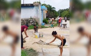 Los niños colaboraron con sus padres que decidieron rellenar los baches por su cuenta. MÉRIDA.- Niños de Seyé salieron junto con sus padres y...