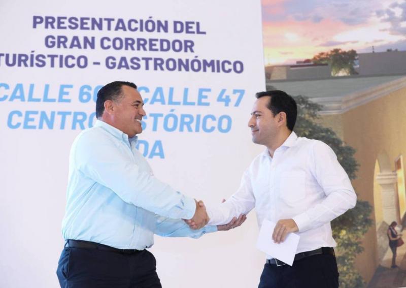 Mérida, Yucatán, 26 de octubre de 2022.- La infraestructura de la movilidad urbana de Yucatán se está transformando como producto del trabajo en equipo, por lo que para seguir impulsándola, el Gobernador Mauricio Vila Dosal y el Alcalde de Mérida, Renán Barrera Concha, presentaron el Gran Corredor Turístico-Gastronómico en las calles 60 y 47 del Centro Histórico, proyecto que ofrecerá vialidades más ordenadas e incluyentes para todos, ofrecerá un nuevo producto al turismo e impulsará la economía de las familias yucatecas.