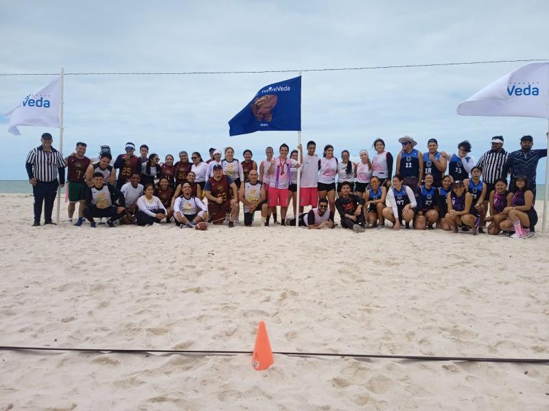 Celestún, Yucatán, 6 de febrero de 2023.- Con motivo del Festival de la Veda, que promueve el Gobernador Mauricio Vila Dosal en los municipios costeros de Yucatán, para apoyar a sus habitantes durante la restricción de captura del mero, el Instituto del Deporte del Estado (IDEY) realizó torneos de tochito bandera y fútbol playero, en Celestún.