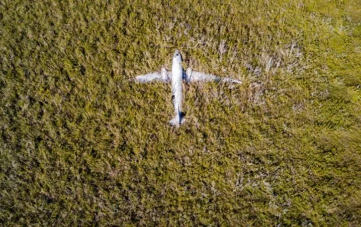 Las fotografías compartidas muestran el interior de la aeronave que contiene barriles oxidados y partes de la aeronave se encuentran deterioradas.