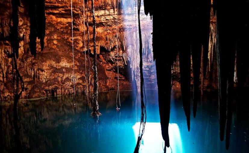 Indicó que el agua se encuentra a 21 metros por debajo de la superficie y el descenso comienza por una entrada rectangular que da acceso a un bello techo con grandes estalactitas.