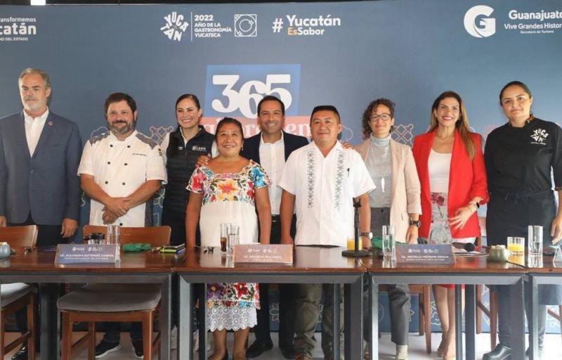 León, Guanajuato, 31 de agosto de 2022.- Yucatán continúa conquistando con su exquisita y variada gastronomía a todo el país a través del Maratón Gastronómico en el que el Gobernador Mauricio Vila Dosal, junto con la cocinera tradicional, Irma Canché Poot, y la chef Sara Arnaud llevaron hasta las mesas de Guanajuato los sabores del estado impulsando al sector turístico, atrayendo a más visitantes, generando empleos y derrama económica a la entidad.
