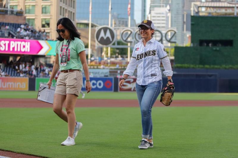 La titular de la Secretaría de Fomento Turístico (Sefotur), Michelle Fridman Hirsch, acompañada del cónsul General de México en esa ciudad, Carlos González Gutiérrez, se encargó del primer lanzamiento oficial de pelota, mientras portaba los colores de los Leones, que actualmente, se encuentran disputando la Serie del Rey contra Diablos Rojos de Ciudad de México.
