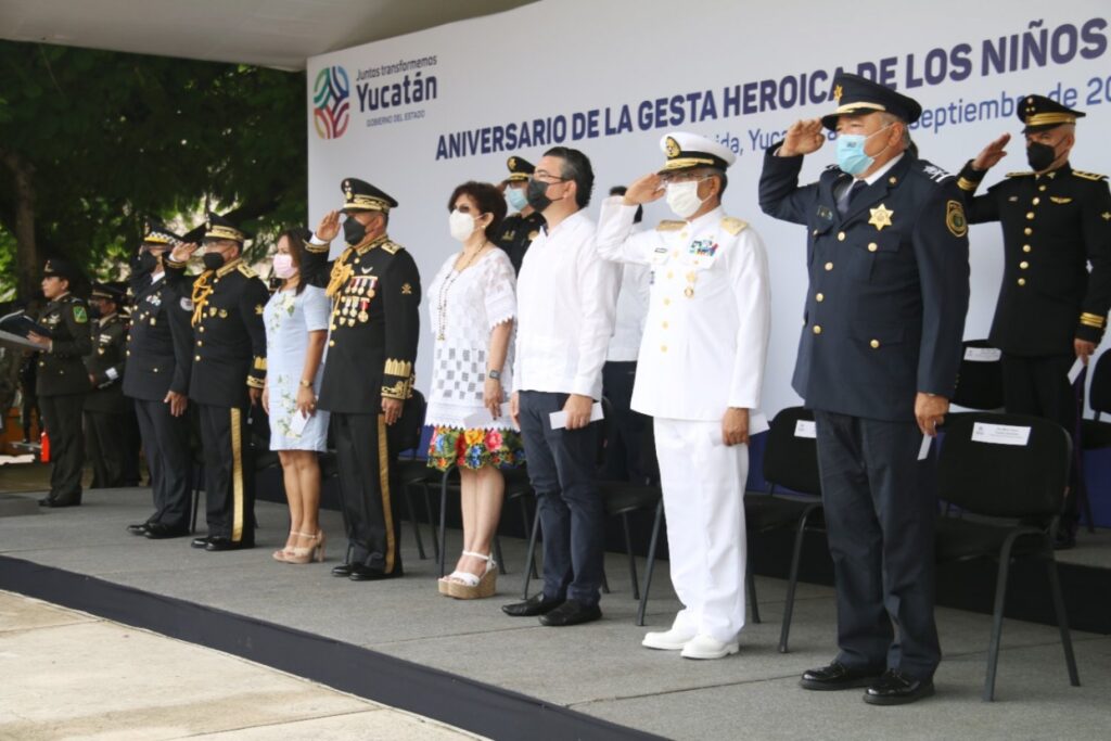 En representación del Gobernador Mauricio Vila Dosal, y ante la presencia de oficiales y tropas del Ejército Mexicano, Armada de México y Guardia Nacional, así como estudiantes y maestros de la Escuela Primaria «Distrito Federal», la funcionaria refrendó honores a los alumnos del Colegio Militar que en 1847 combatieron al ejército invasor estadounidense.