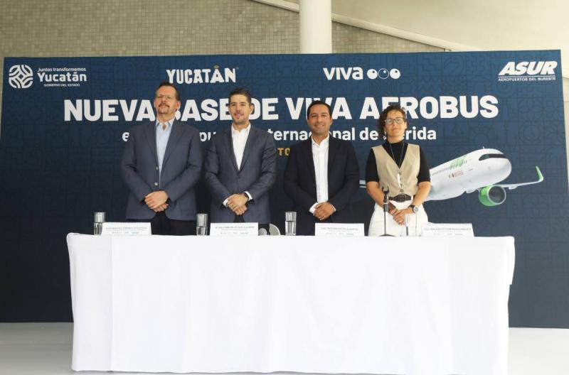 En rueda de prensa en Ciudad de México, el Gobernador Vila Dosal y el director general de Viva Aerobus, Juan Carlos Zuazua Cosío, anunciaron la nueva base que operará, en su primera etapa, más de 400 vuelos mensuales transportando a más de 160 mil pasajeros, así como la entrada de operación, en los próximos meses, de 3 nuevas rutas aéreas para conectar directamente a Yucatán con León, Querétaro y Toluca, con lo que sumarían en total 10 rutas de esta aerolínea, manteniéndose como la línea con mayor oferta en el territorio.